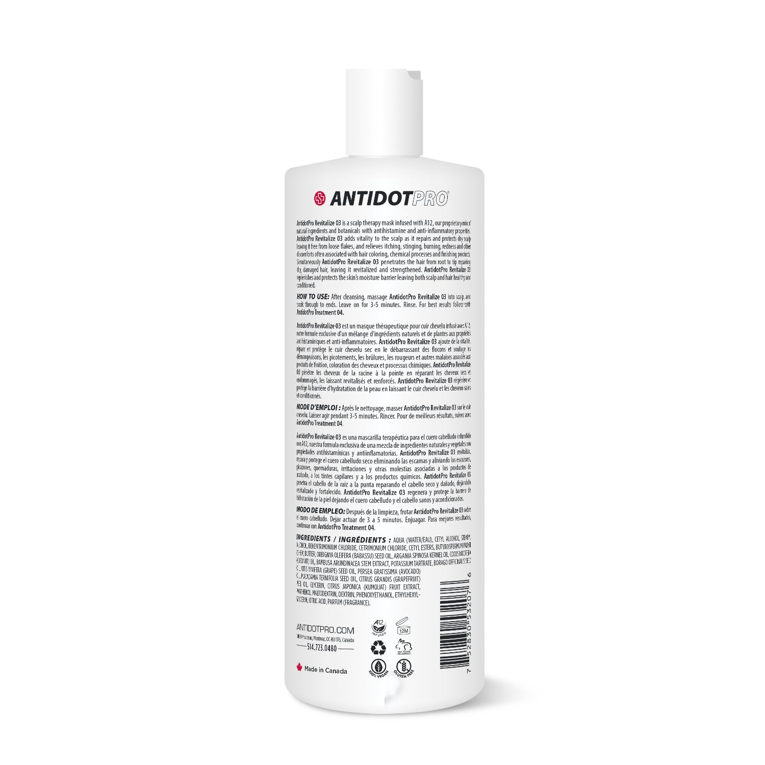 Important: Antidotpro 01 Scalp, is the Neutralizing (FIRST) step, and is to be followed up with Antidotpro 05 Pre-Scalp the Barrier (SECOND) step, MAXIMAL PROTECTION. As you can see Antidotpro 05 PRE-SCALP, as the name implies, goes on the scalp BEFORE Antidotpro 01 SCALP.